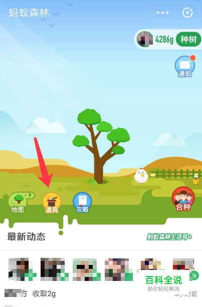 打开蚂蚁森林首界面,点击【道具】图标按钮
