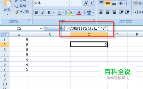 有时候我们需要统计一列数据中满足某个条件的数的个数或者他们的加和,我们可以利用coutifs和sumifs函数轻松的完成任务,下面我们就通过一个列子来演示,统计数据在A列,条件是大于8