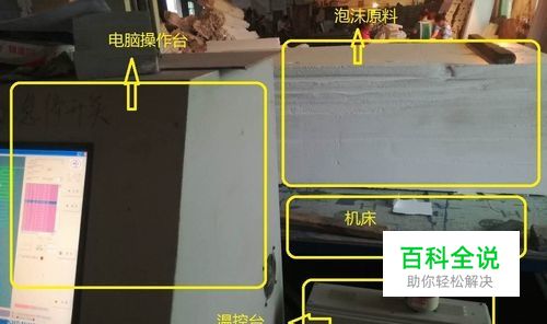首先我们把切割所需要的原材料也就是泡沫放置于切割机床上。放置时要注意以下两点。 (1)对着切割丝的泡沫的边缘一定要与切割丝平行,这样可以提高产品的合格率。 (2)由于泡沫底面不平而产生的较大空隙会导致泡沫的不稳定摇晃,所以一定要在空隙中塞入固体物稳定泡沫
