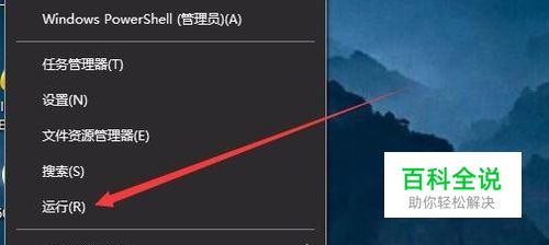 在Windows10桌面,右键点击桌面左下角的开始按钮,在弹出菜单中选择“运行”菜单项。