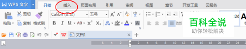 首先双击打开WPS文字,在菜单栏(标题栏下来一行)选择“插入”