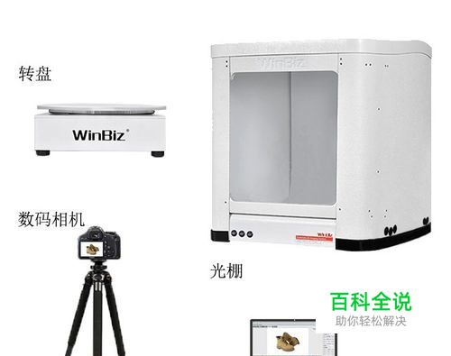 介绍一下设备:数码相机、摄影棚、转盘、电脑、winbiz3D自动成像软件(控制转盘转动,控制相机拍照,从而生成全景主图)