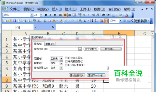切记,我们在查找设置时,查找范围一般我们选择“公式”即可,因为公式中包含有值。