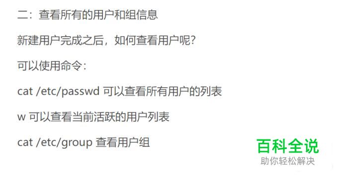 首先,我们要知道一些查看用户和组的命令,如图所示,使用以下命令来查看。