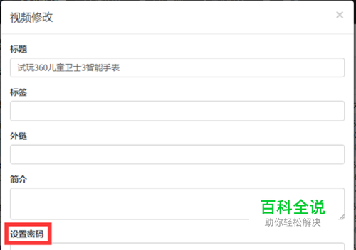 点击【视频设置】后进入如下界面,在【设置密码】处输入您想设置的密码,设置完成后点击【保存】即可。