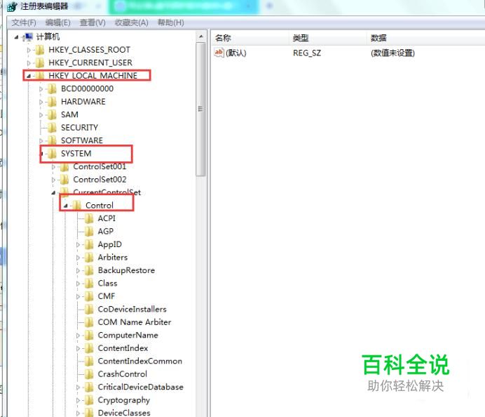 注册表编辑器 在注册编辑器中找到【HKEY_LOCAL_MACHINE\SYSTEM\CurrentControlSet\Control】,如下图所示: