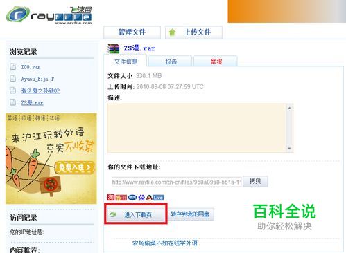 找到一个Rayfile的下载页面,点击“进入下载页”。 进入,下载页后,我们看到直接下载并没有给出地址,右键>>查看源代码。 Ctrl+F或者弹出查找对话框,查找"http://cahe"找到的就是http协议下载地址。 好了,把地址复制到下载软件,下载吧。