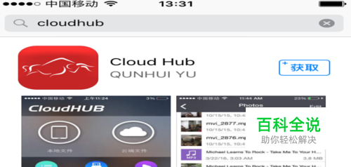 一、APP软件下载安装: 打开iOS设备主页界面进【App store】栏目输入【Cloud Hub】搜索弹出界面