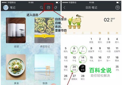 【查看日期功能】小清新的界面风格支持显示农历、重要节日。凡是当天有记录,就会自动在日历上显示标记,便于管理。