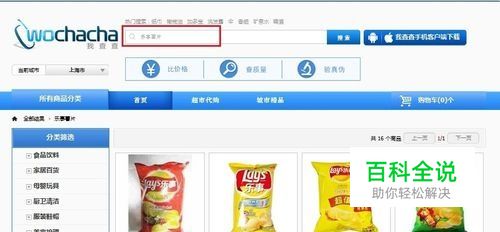 可以从以下两种方法中任选一种开始比较价格: (1)直接在我查查搜索框中输入要比价的产品名称,如键入“乐事薯片”,则出现以下页面,并从中选择您想用来比价的确切产品,点击“比价”: (2)在页面左方“所有商品分类”中寻找“乐事薯片”,点击“比价”: