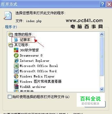 php文件相信很多电脑老手也不知道吧?今天有电脑电脑百事网网友问了编辑这个问题:“php文件怎么打开?”,其实大家并非是需要去打开php文件,多数只是因为下载东西,错误的下载到成了网页文件,主要是下载站中的下载连接其实是php脚本文件控制的,有的不支持一些下载工具下载,防止大量占用网站服务器资源,当使用讯雷下载的连接就会失效,也可能是服务器链节地址失效,导致下载到的东西只是也个php脚本文件,根本不是你要查找的相关资料,不信大家可以使用记事本打开,里面全部是php英文语法脚本,解决办法大家可以使用目标另存为下载即可。 下面简单介绍下什么是php文件,PHP是一种服务器端HTML-嵌入式脚本描述语言。 其最强大和最重要的特征是其数据库集成层,使用它完成一个含有数据库功能的网页是不可置信的简单。在HTML文件中, PHP脚本程序(语法类似于Perl或者c语言)可以使用特别的PHP标签进行引用, 这样网页制作者也不必完全依赖HTML生成网页了。由于PHP是在服务器端执行的, 客户端是看不到PHP代码的。 PHP可以完成任何CGI脚本可以完成的任务,但它的功能的发挥取决于它和各种数据库的兼容性。 PHP除了可以使用HTTP进行通信,也可以使用IMAP, SNMP, NNTP, POP3协议。 下面为大家列出电脑百事网程序中的一个php文件给大家看看:php文件怎么打开? php文件怎么打开,其实需要编程软件才可以打开,因为.php文件是一个网页脚本程序, 专业人士可以使用Dreamweaver 网页制作软件或者编程软件都可以打开,并进行编辑,对于多数不需要用到的朋友可以使用记事本打开,方法是将鼠标放在php文件上如上图---鼠标右键---选择打开方式----选择记事本打开即可,如下图: 打开了之后,效果就是上上图中的英文脚本程序了,一般用户也看不懂,编辑因为接触,脚本程序的含义还是知道的,当你下载的是一个类似于asp或php的链接文件时,最终跳转下载的不是下载地址例如后缀类似于rar的文件时,说明您下载存在问题,其原因是你使用的是下载工具下载,但该网站限制下载工具下载,也可能是网站下载链接地址失效,总之下载到是php文件说明您下载失败了,要打开使用记事本可以查看php文件内容。
