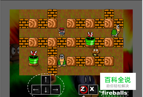 键盘↑↓←→控制移动,Z键安置炸弹,X键火球(吃到花才可以施放火球)。