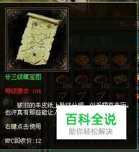 挖宝 现在很多人觉得挖宝是鸡肋,奖励并不多,所以在高昌迷宫以及河伯水患时,满地的藏宝图都没人捡。其实自从上次挖宝改了之后,收益还是挺可观的,13级的藏宝图,能挖到9000两银子,而且挖到钱的几率也比较高。我集中挖过一次,40来张12、13级的藏宝图,挖到10万左右银子,1个53级宝石和1个6级吴山石,前后不到10分钟。