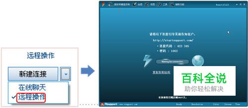 成功登录后,点击面板下方的“新建连接”右侧的下三角按钮,可以看见有“在线聊天”、“远程操作”两个选项。这里选择“远程操作”直接进入RemoteCall Viewer,如下图所示。