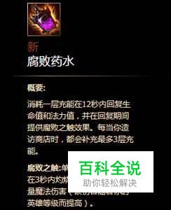 出门装:腐败药水赖线,每次造访商店时会补充到三层充能,为对线期节省不少经济