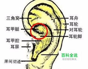 我们直观一点,看看真正耳朵的耳甲艇的具体位置(红圈所示); 大家可以用手指感受一下