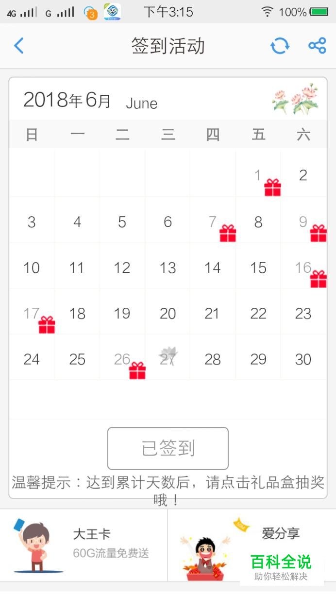 首先是可以签到得流量,不过重在坚持,达到一定天数,就会得到相应的流量。