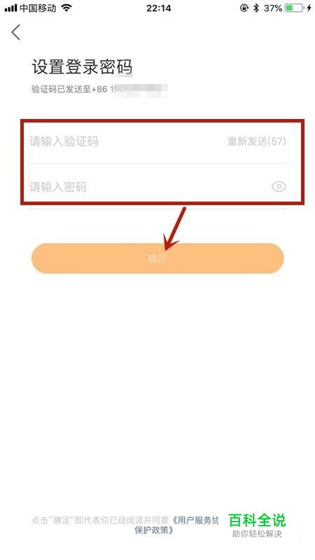 接着输入手机所接收到的验证码并设置你的密码,然后点击确定,如下图所示。