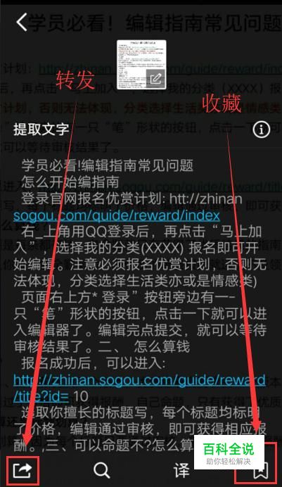 提取完成之后,可以将文字进行收藏,也可以将文字进行转发,如图所示。