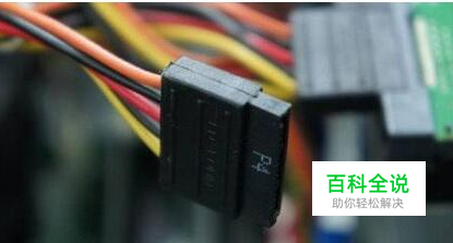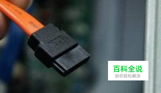 在机箱内找出安装SSD的线材,首先是SSD的电源输入接口,这个是由电脑的电源引出的线材,形状是扁嘴形