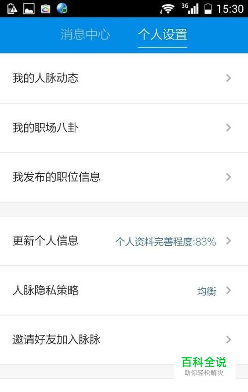 登陆脉脉之后,到个人中心栏目下,点击个人设置板块,就可以看到人脉隐私策略,就可以进行设置