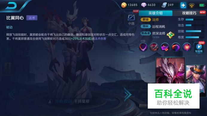 被动比翼同飞,也就是普攻造成300+25%法术伤害,这让他在进战的时候可以普攻打出伤害。