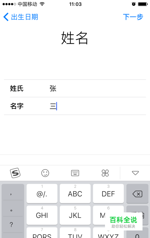 输入姓氏、名字,点下一步