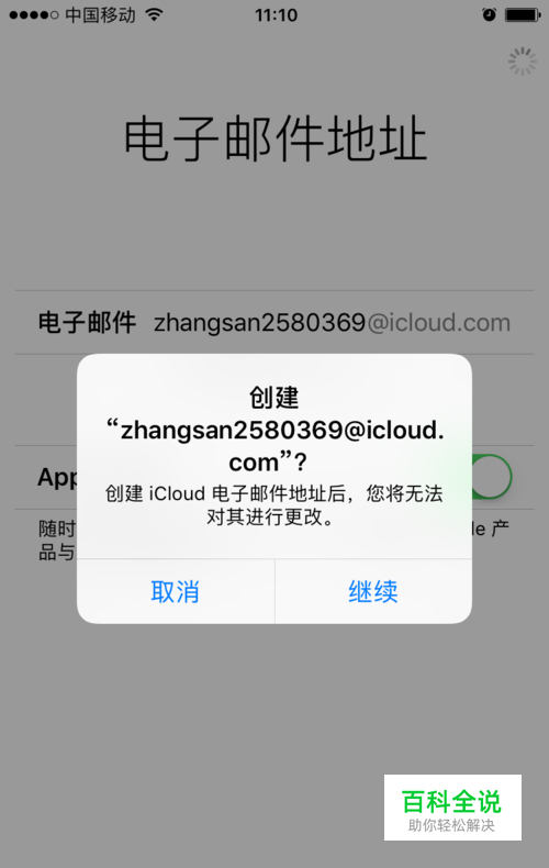 设置ID帐号,帐号一般是英文和数字组成,也可以自己想。输入好之后点下一步,出现提示点 继续