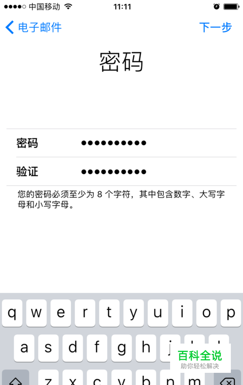 按要求设置ID密码,密码必须包含大写字母、小写字母和数字,且不能少于8个字符,设置好后点下一步