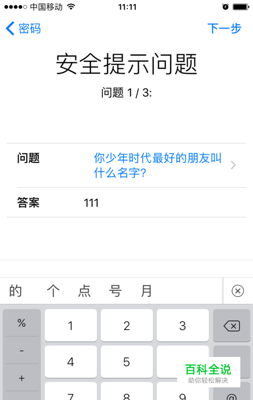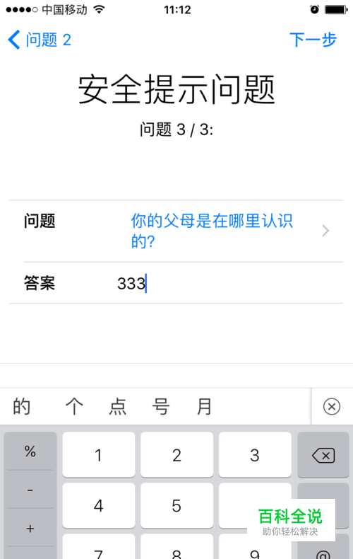 然后会出现三个安全提示问题,这里建议用纸笔记下来自己设置了什么问题和答案,以防日后ID密码忘记了,会需要用到这个来找回ID。再下一步