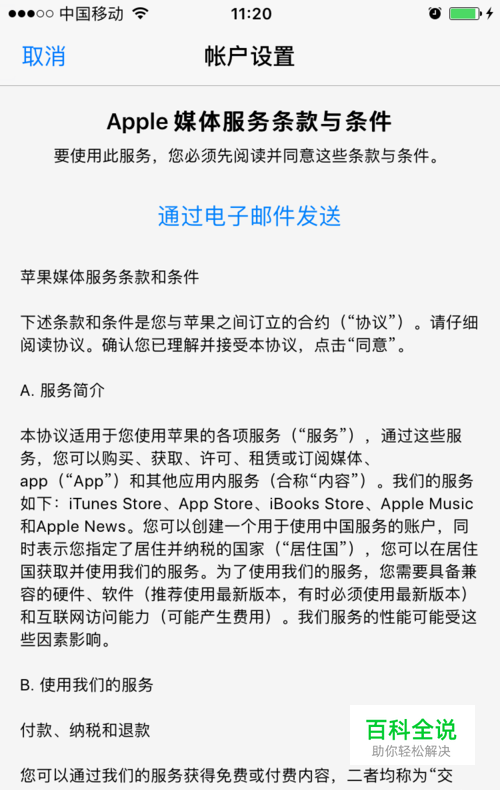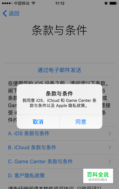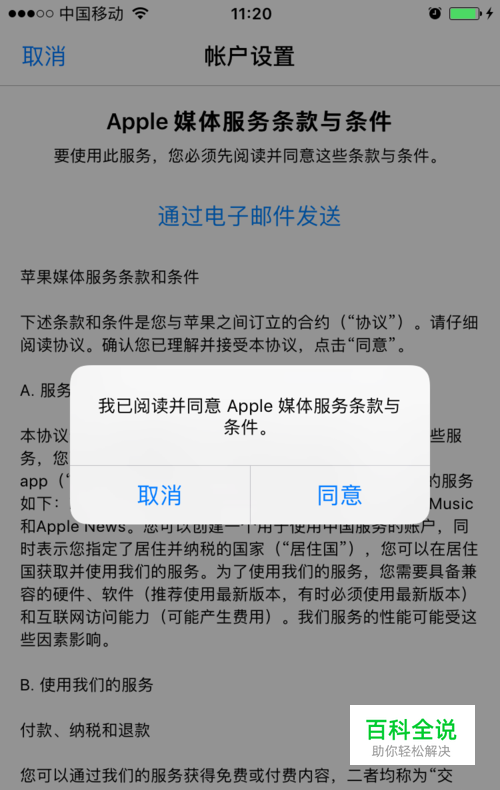 提示 Apple媒体服务条款与条件,点击同意,再同意
