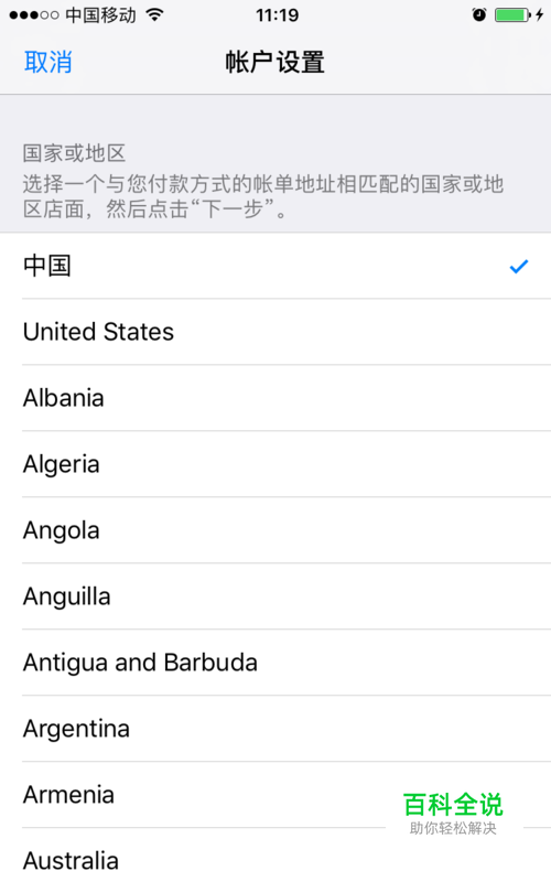 看到打勾默认在中国那里,点击下一步