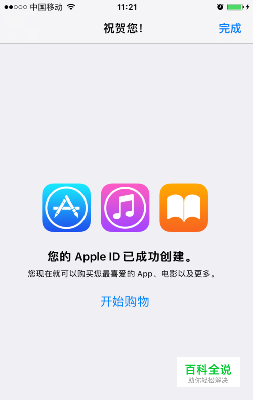 提示 您的Apple ID已成功创建,点击开始购物。然后就可以尽情下载自己需要的软件啦..