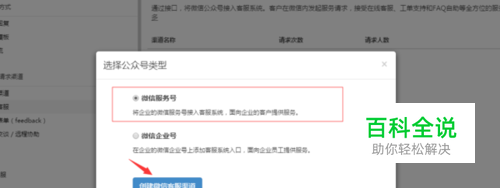 点击右侧“添加渠道”按钮,选择你的微信服务号类型,点击创建微信客服渠道,进入微信渠道添加页面页面。(以微信服务号为例)