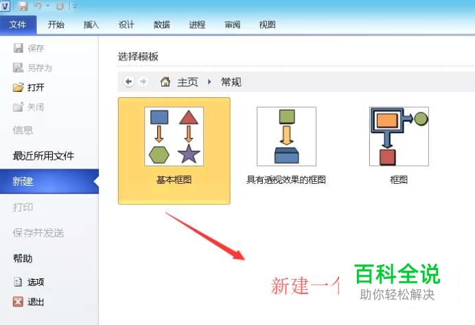 首先我们打开Visio 2010软件,新建一个基本框图,如下图所示
