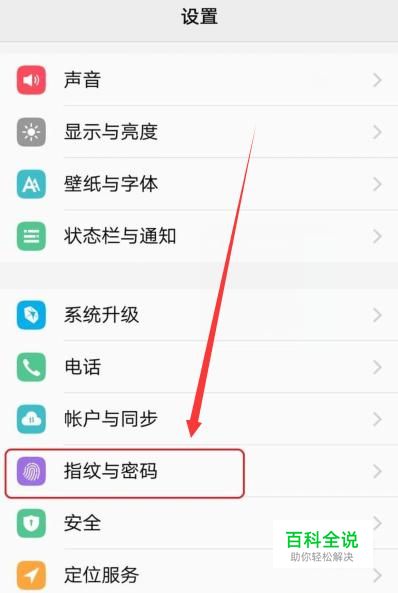 在设置里面找到“指纹与密码”,点击并进入,如图所示。