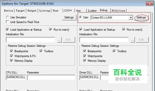 下面是在MDK里设置的图片。 需要按下图方式选好烧写调试工具。