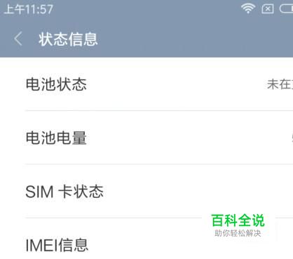 转到“关于手机”的界面。在这里,我们再找到并点击:状态信息;进入到“状态信息”界面。