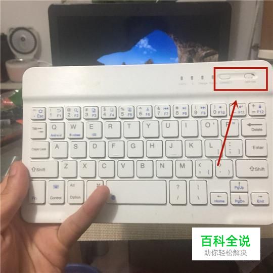 首先将蓝牙键盘开关开启,如下图所示。