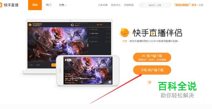 获得了权限之后大家要在官方电脑的网址上面下载快手直播伴侣,如下图。