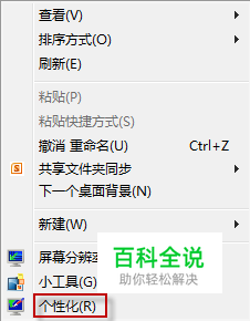 在桌面空白处,单击鼠标右键,选择“个性化”