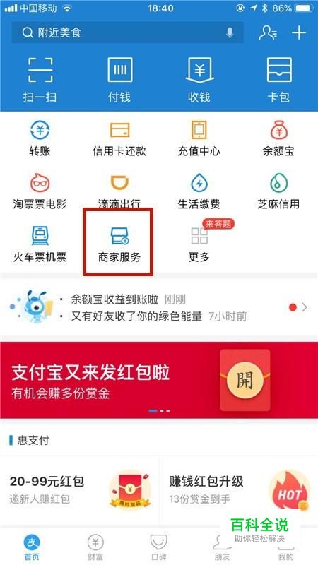 然后点击商家服务,如下图所示。