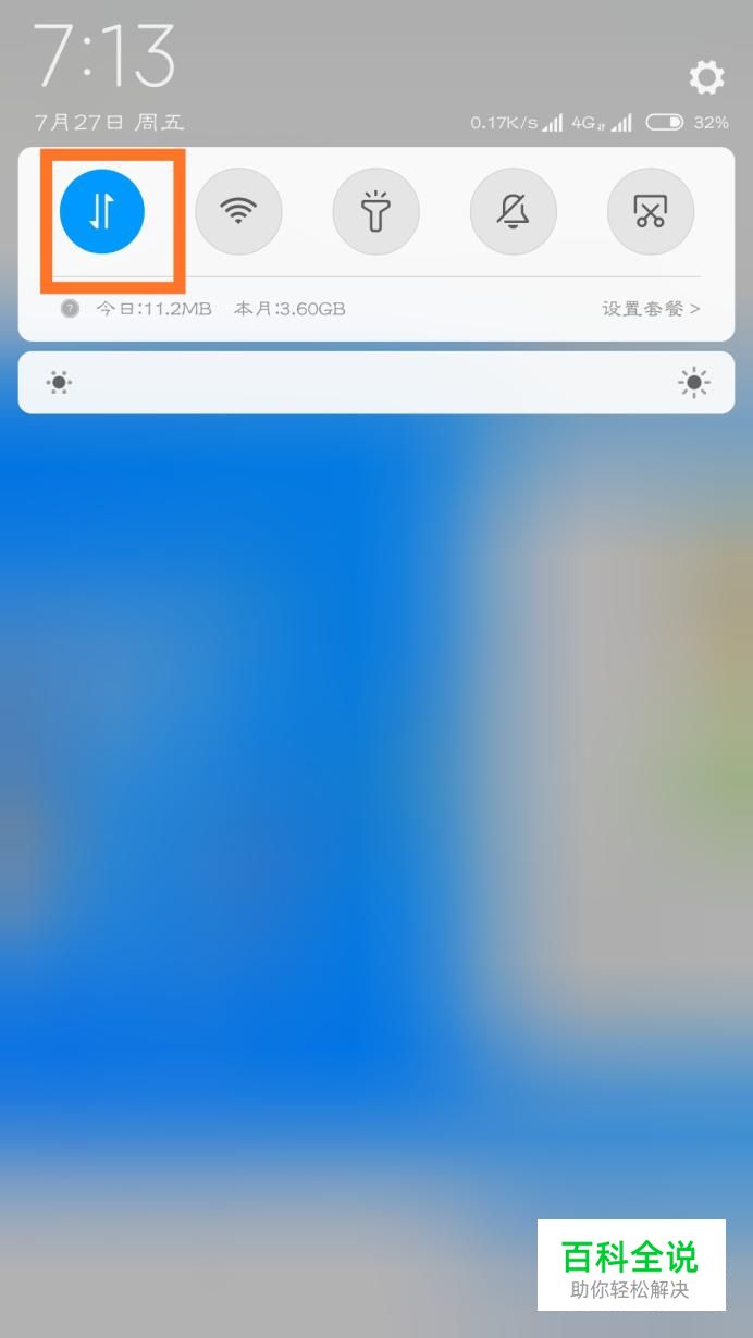 这种情况大多是因为手机所处的位置信号不稳定造成的,首先拉下状态栏,长按数据图标3秒。