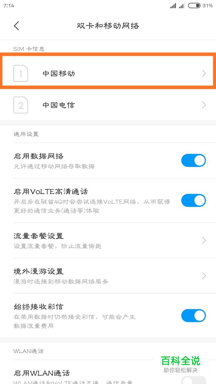 如果两张卡是不同运营商也可下拉菜单,把数据网络用卡设置为另外一张卡。