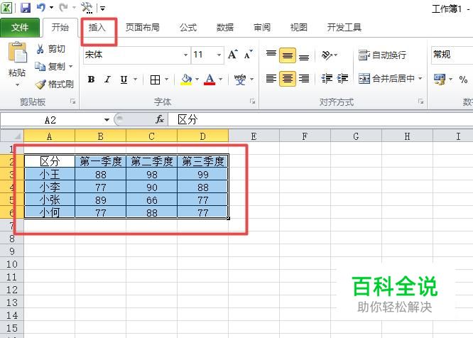 然后我们选中这些数据,之后点击插入;