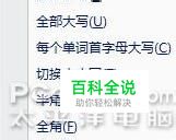 Word2007中转换方法 选中需要相互转换的字符之后,单击“开始”选项卡中的“更改大小写”下拉按钮,打开如图2所示列表。需要将全角字符转换为半角时单击“半角”,需要将半角字符转换为全角时单击“全角”完成转换。
