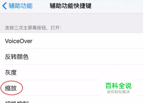第一步:到设置-通用-辅助功能里,最下面那栏【辅助功能快捷键】选择【缩放】。