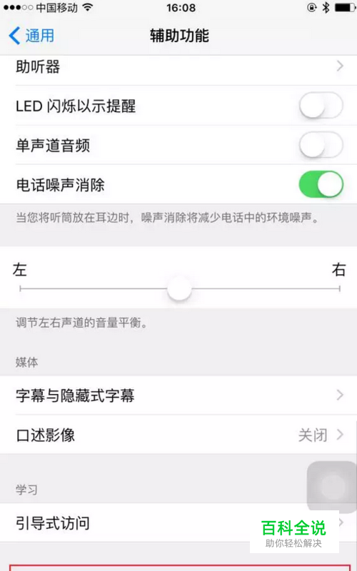 第三步:连续按三次Home键或连续点三次小圆点,这时候屏幕变暗了,把如图滑调滑到最左边即可。