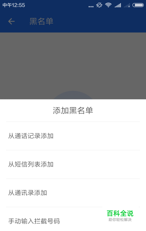 可以从通话记录、短信记录以及通讯录选取名单,也可以手动输入拦截号码。