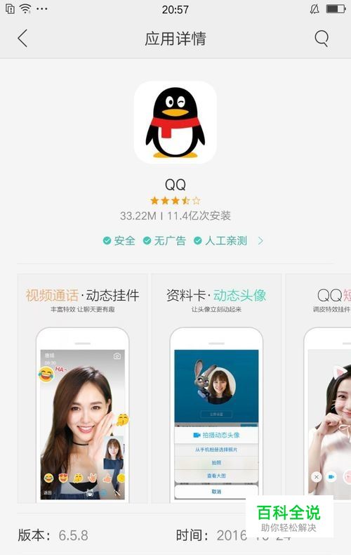 在自带的软件商店下载,在下载之前,也是可以了解是否安全。 以QQ软件为例,软件名称下面就会显示是否安全、是否有广告等。